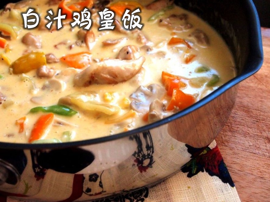 材料:雞肉 200克,白蘑菇 (切片)10個,青椒/黃椒/紅椒 適量,蒜頭 1個,濃忌廉 250毫升,生粉(溶於水)1湯匙,胡椒 適量,鹽 適量