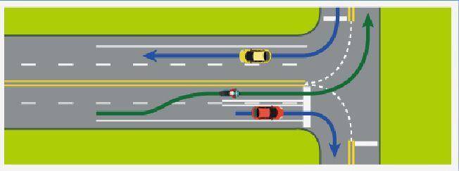 行駛快車道,到達交岔路口不須二段式左轉,可直接由快車道或內側車道左轉。