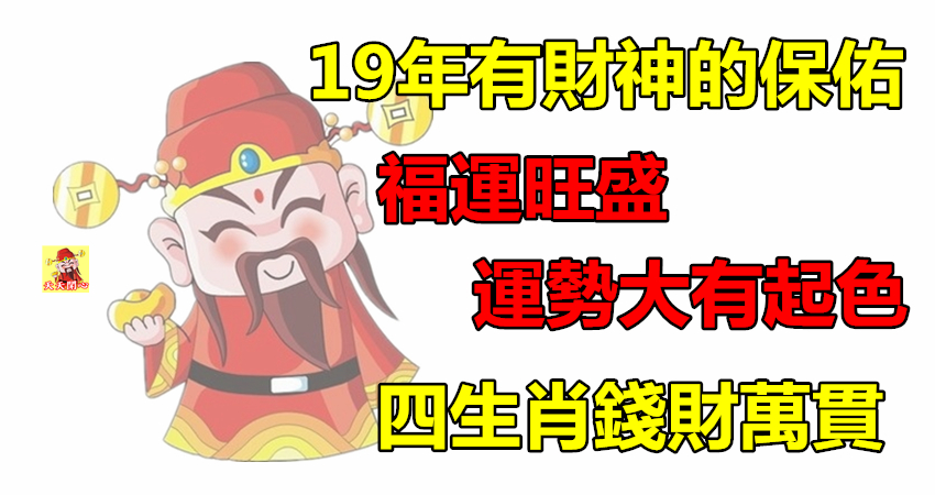導語:19年有財神的保佑,福運旺盛,運勢大有起色,四生肖錢財萬貫