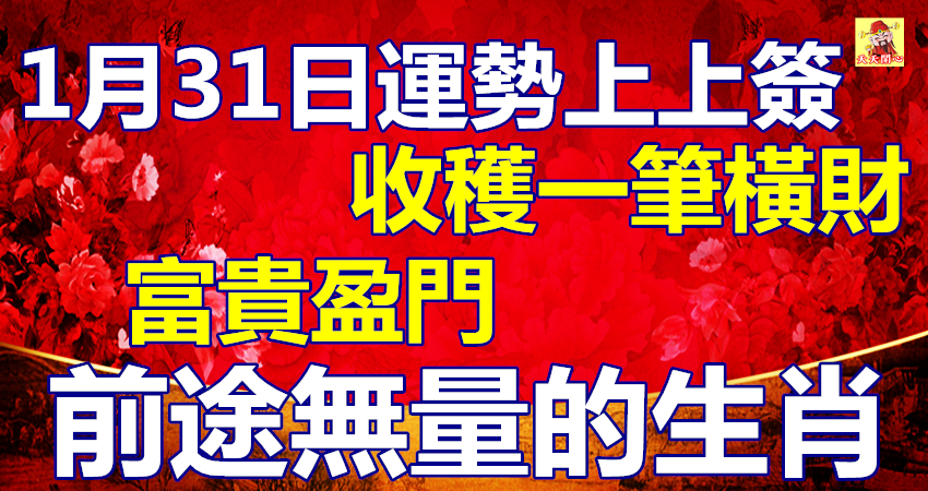 屬狗的人聰明勤奮,為人正直,他們有著敏銳的洞察力和直覺力,為人善良,一生積德行善,福緣深厚。12月31日,運勢上上簽,收獲一筆橫財,富貴盈門,前途無量,運勢突飛猛進,身邊好運不斷,不僅事業上一帆風順,身邊也有很多朋友幫助,凡事順順利利,財喜兩旺,心想事成。
