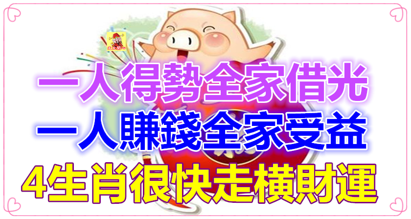 現實的問題往往是讓人頭疼的,但千萬要記得現實的問題該怎樣去解決,而不是逃避,許多人覺得自己沒有那個本事,解決不了許多的問題,但你知道嗎?其他人不見得就比你的本事強,只不過他們的責任心是很強的,他們知道不規避自己的責任,勇敢的去面對,才可以讓自己的日子過的越來越開心。正所謂一人得勢全家都跟著借光,對於這4生肖來講馬上就要走運了,你自己你們的家人都該跟著開心起來。