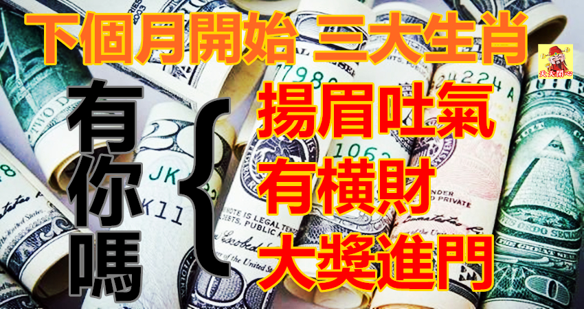 當看著別人財運旺盛起來時,自己心中難免失落。其實不必如此,發財機會人人都有,只是時機未到。以下這些生肖下個月財庫大開揚眉吐氣,正財偏財一起來。