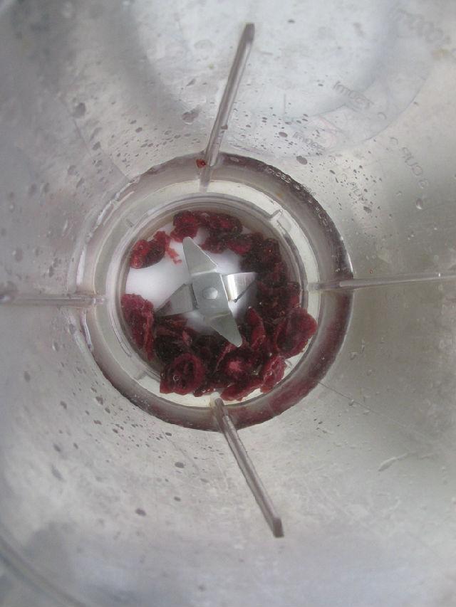 蔓越莓干 (20克) 純淨水 (200克) 白糖 (30克) 魚膠片 (1片)