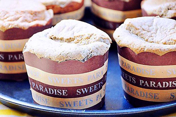 最後一步:將加好蛋糊的紙杯擺上烤盤,放入預熱好的烤箱中,150度烘焙30分鐘即成。