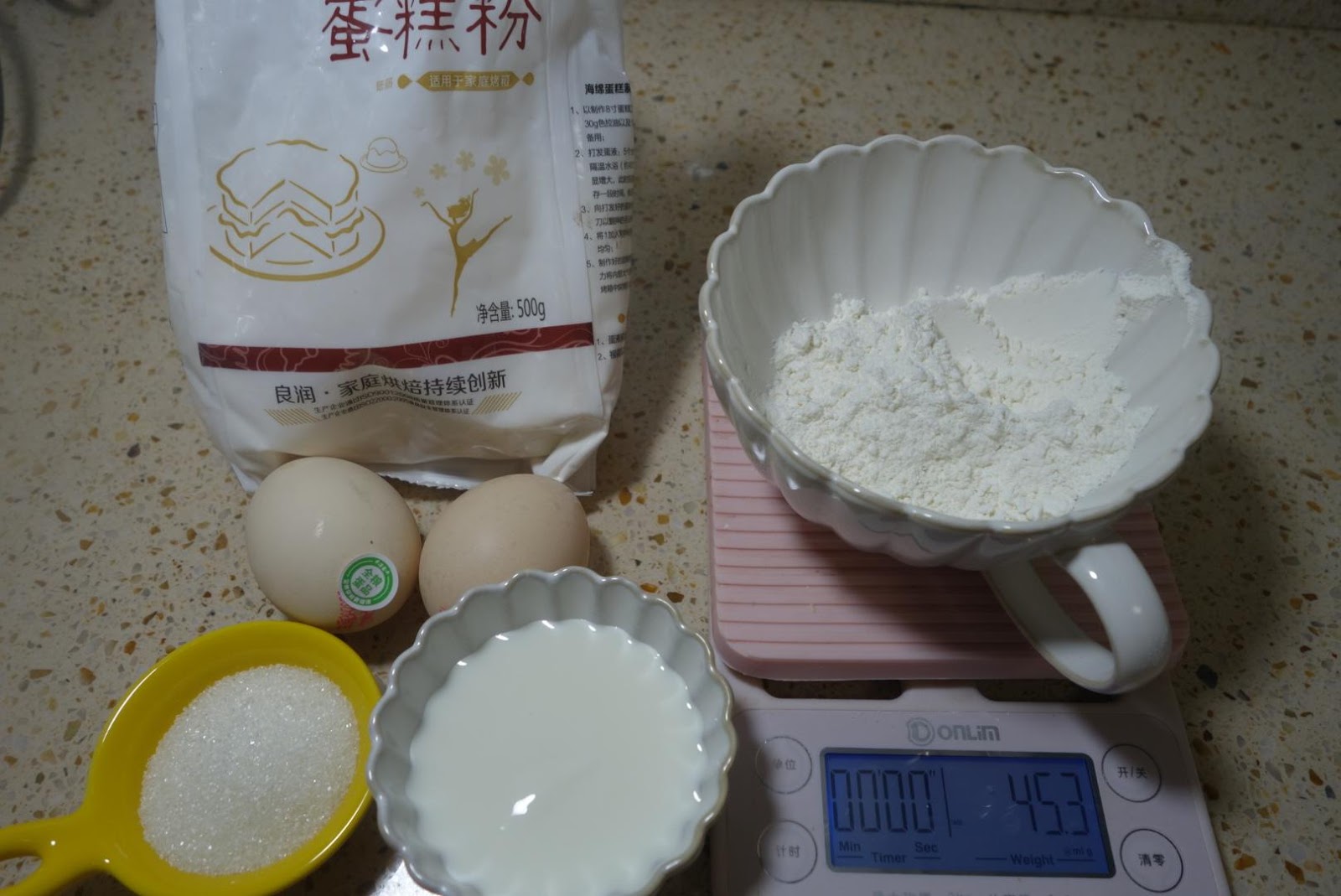 雞蛋2個,細砂糖30克,酸奶75克,低筋麵粉45克