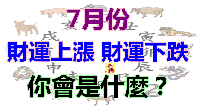 流月不一樣,當然12生肖的財運也是不一樣的,君子愛財、取之有道。公歷7月,哪幾個屬相財運上能上漲?哪幾個屬相財運跌落呢?本文說的是本月屬相的財運漲幅和跌幅的前幾名,並不是說明該月財運最高和最低的屬相。