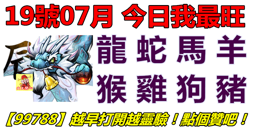 屬龍今日運勢 (2019年07月19日)
