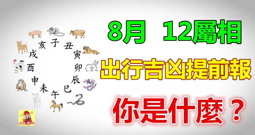 流年和留月的不同,出行情況也會發生變化,公歷8月份12生肖出行吉凶如何呢?命理學和位理學中的九宮飛星和五行生化原理,排出如下情況,僅供朋友們參考。那麼一起來看看8月12屬相出行吉凶?