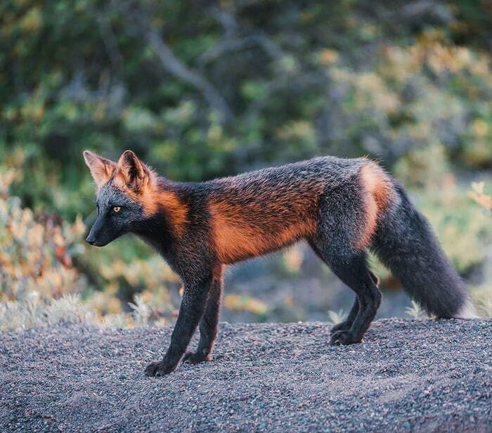 ▼十字狐有許多變種,牠們是赤狐跟其他狐狸雜交的後代,所以黑色素比較多,毛色很罕見。