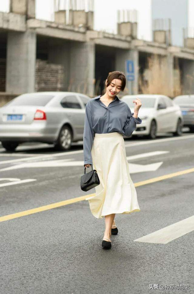 襯衫+傘裙+穆勒鞋,也算是我春秋季穿搭頻率很高的組合。