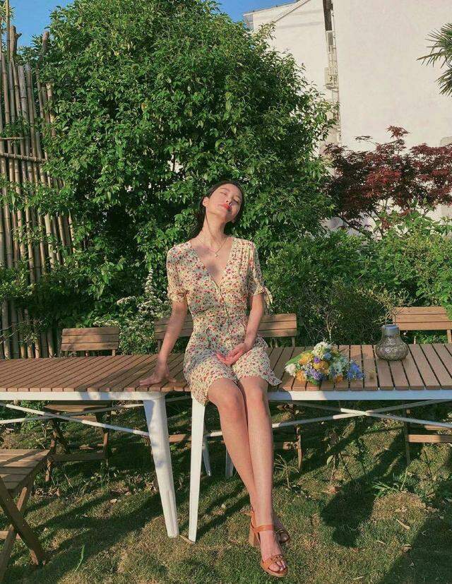 別看碎花裙是好看的,但很顯氣質卓越的款式自帶浪漫氣息,在顏色上面,她是hold不住大膽顏色的話,那麼不出錯的淺色系搭配也依舊是出彩的。