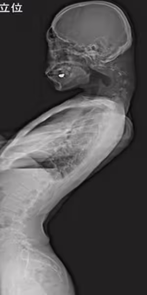 男子長達半年頸部疼痛,甚至抬不起頭,這也導致他吞嚥困難,沒辦法好好吃東西的情況下,體重明顯減輕。他就醫尋求幫助,竟被確診罕見的「頭部下垂症 Dropped Head Syndrome」,X光顯示他的頸椎已變形與位移,還出現一個尖尖的腫塊,看上去就像脖子長了根角。