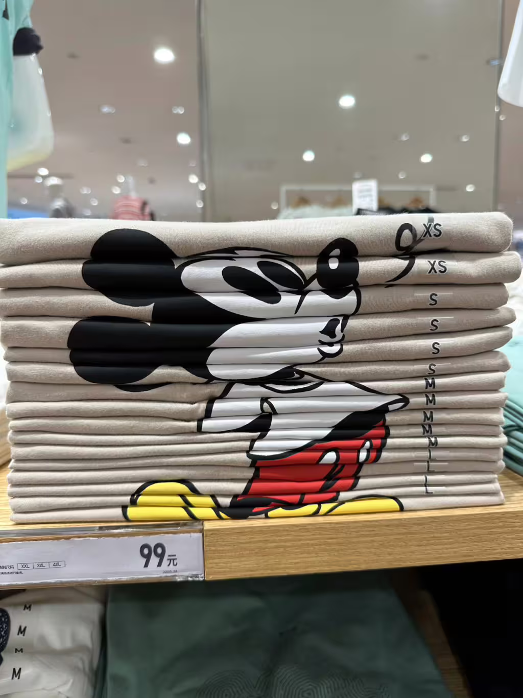 一位網友在社群平台《小紅書》附圖發文:「優衣庫,你是要卷死誰呀?」 (補充:中國網路用語「卷」可用來形容拚命把工作做到完美。) 架上一疊米色上衣整整齊齊按尺寸大小從XS排至L,客人經過完全不必動手,就能看到衣服上「米奇吹口哨」的印花,這要歸功於店員的細心和耐心,看到店員用衣服完整拼出圖案讓原PO甘拜下風。