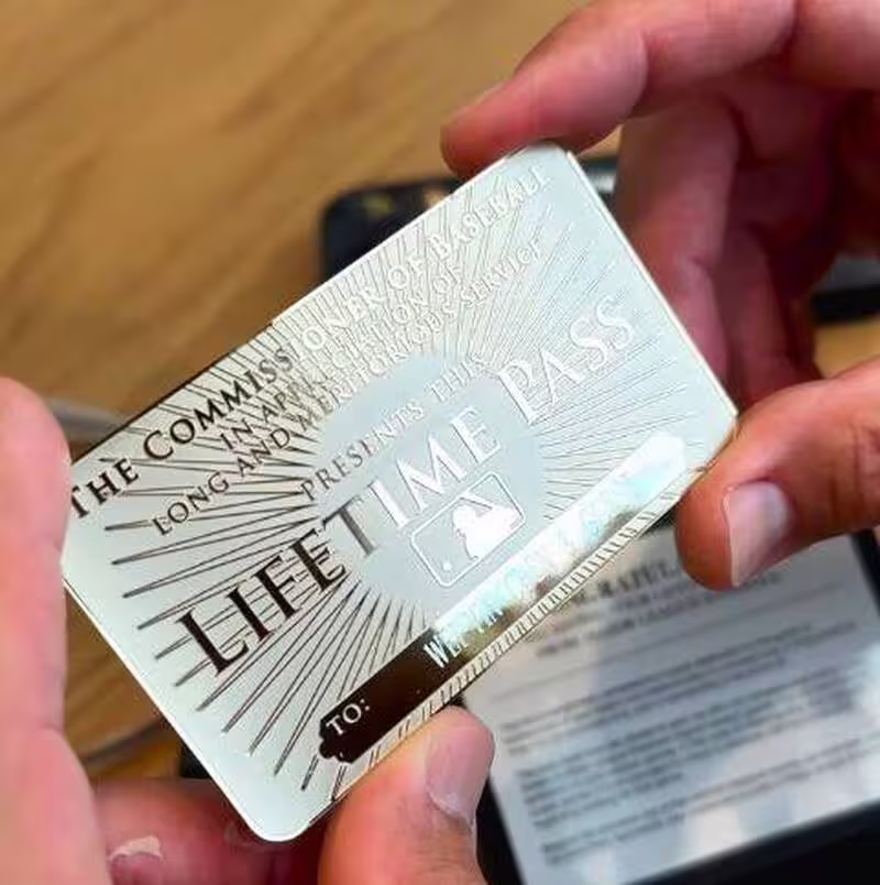 陳偉殷說明,這張卡片其實是MLB特別的終身免費入場證,也被稱為「黃金票」或「白金票」,持有人可以終身免費進入所有MLB球場觀看例行賽,還能攜帶一名賓客同行,是一張傳說級別的卡片。