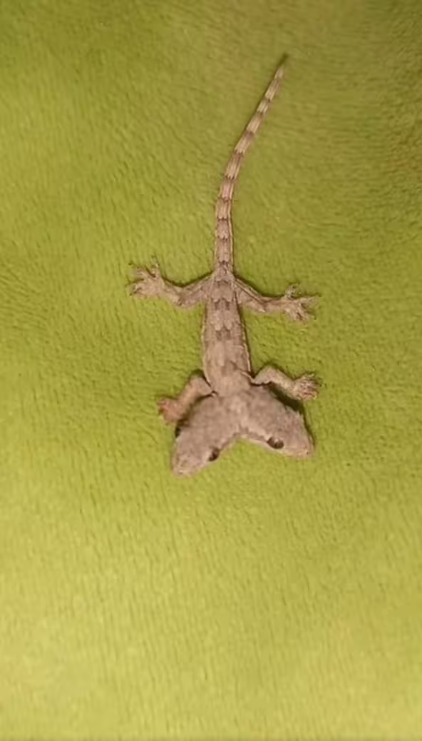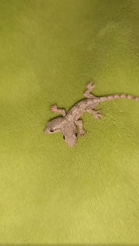 目擊女子看到活生生的雙頭動物後,嚇到立刻拿起手機錄影。為了查出這隻生物的真面目,她上專門辨識昆蟲動物的臉書社團求解:「這是什麼?牠有兩個頭,是壁虎還是守宮?」神奇的影片吸引超過6.5萬觀看,底下網友回覆那是隻壁虎,而且是非常罕見的雙頭壁虎。