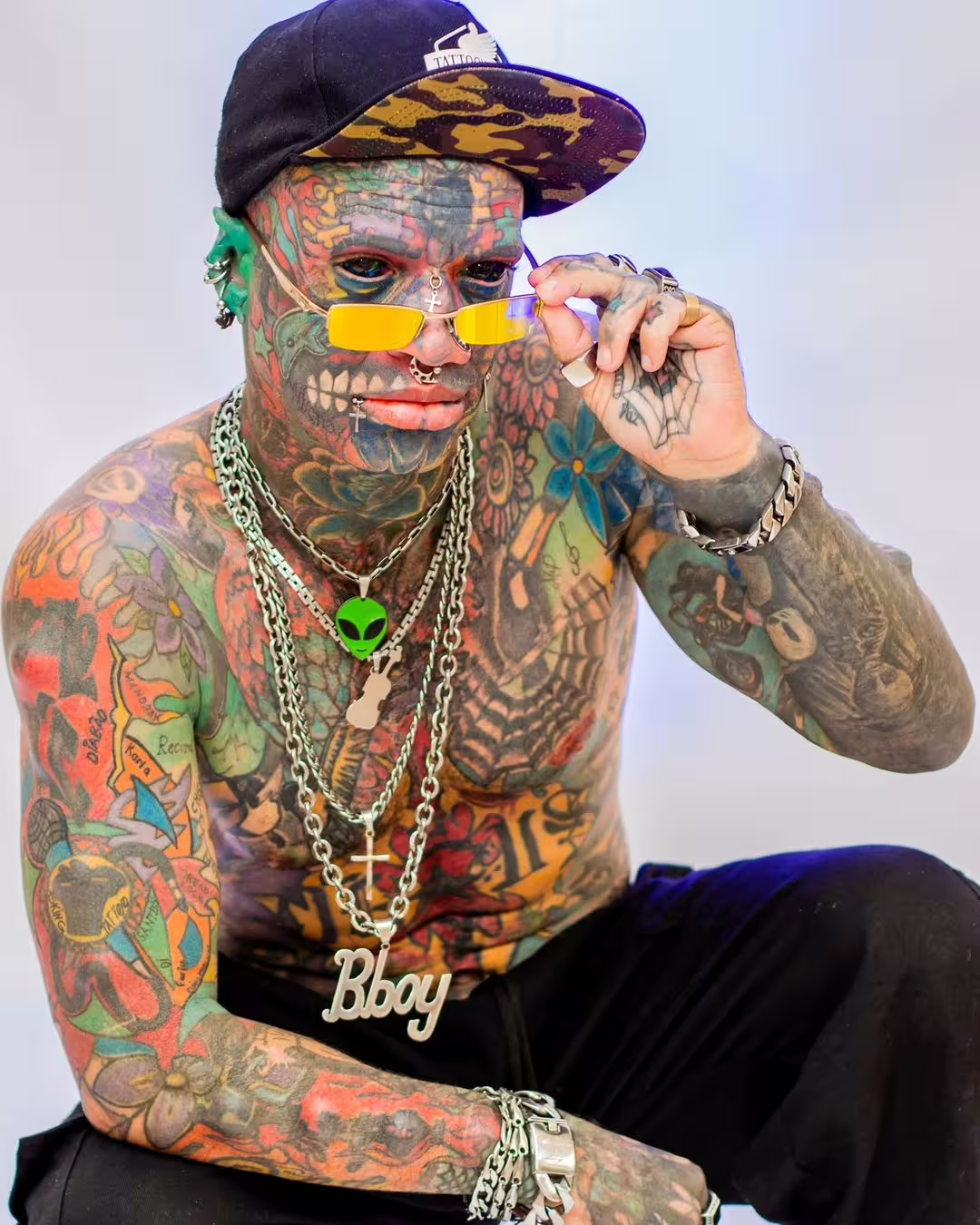 現代年輕人把刺青視為一種自我風格,但巴西的38歲男子Marcelo B-Boy (原名:Marcelo) ,走上更極端的道路!他不只刺滿全身,甚至連眼球、牙齦、舌頭與耳朵都進行改造,驚人的外貌讓其迅速在網路爆紅,各國媒體爭相報導。