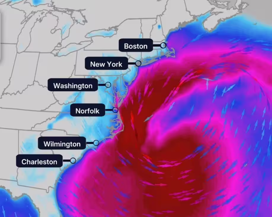 根據媒體《TVBS》、《東森新聞》的報導,美國東岸在上周末遭遇超強冬季風暴,約2.4億人處在低溫警報或天氣警戒之下,更慘的是,風暴後續還增強為「炸彈氣旋」,不少地區都出現類似暴風雪的惡劣天候,氣象單位預測北卡羅來納州將出現35公分的積雪,當地市長表示自1980年代以來從沒看過這樣的情況。