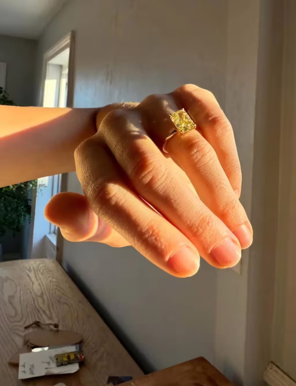 根據《時人》報導,當天賈斯汀幫忙預約看診並陪著女友進診間,安娜伊絲覺得男友很體貼,完全沒有起疑。3位醫護人員進診間時,安娜伊絲還想說只是個小傷,怎麼需要那麼多人來。當醫師在螢幕上秀出一張左手X光片,安娜伊絲才驚喜發現,X光上的無名指竟然多一枚戒指。這對情侶交往2年,賈斯汀幾個月前就想求婚了,早就準備好一枚3.47克拉的鑽戒,但遲遲等不到開口的好時機。