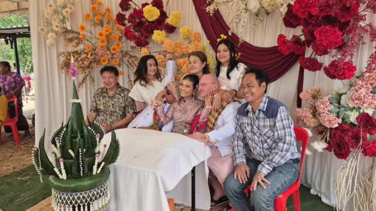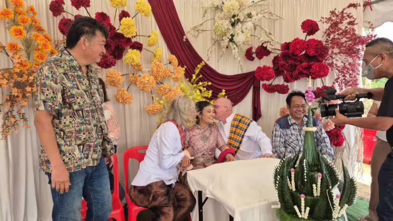 泰國東北部日前舉行一場罕見的「三人婚禮」!一名37歲的新娘杜吉端吉察羅 (Dujduan Ketsaro,暱稱吉格Gig) 於2月28日,在布里蘭府帕空猜縣同時與兩名來自奧地利的男子完成婚禮,三人決定共同生活,引發社群廣泛討論。